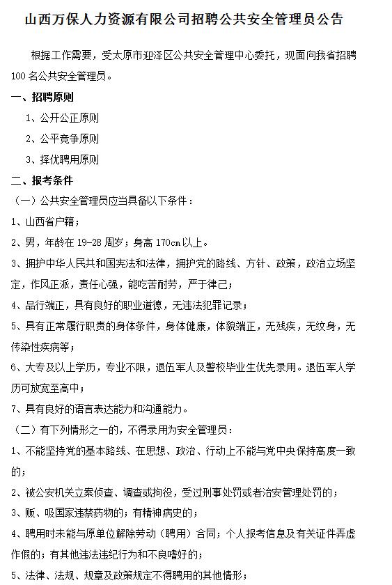 根據(jù)工作需要,經(jīng)市政府批準(zhǔn),現(xiàn)面向社會招聘60名(男35人,女25人)警務(wù)輔助人員,派遣至太原市公...