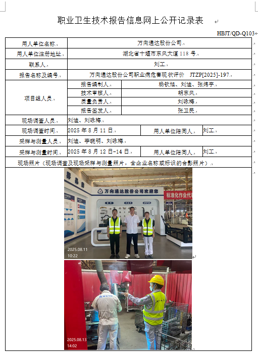 萬向通達股份公司職業(yè)病危害現(xiàn)狀評價